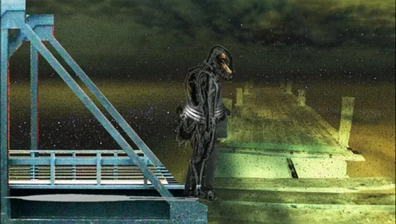 Ψάχνοντας για να βρει, άξαφνα θα δει να εξαντλούνται τα λίγα Τρίτα απόστασης που τον χωρίζουν από τους ναούς. Διασχίζει την τελευταία γέφυρα και, μέσω πλευρικής εισόδου στο θόλο, φτάνει σε κάτι μισό ερειπωμένα και μισό εγκαταλελειμμένα κτίρια, ξύλινα και κεραμοσκεπή αρχιτεκτονήματα, οργανωμένα σαν σε μια άγρια εκδοχή χαώδους ομοιόστασης.